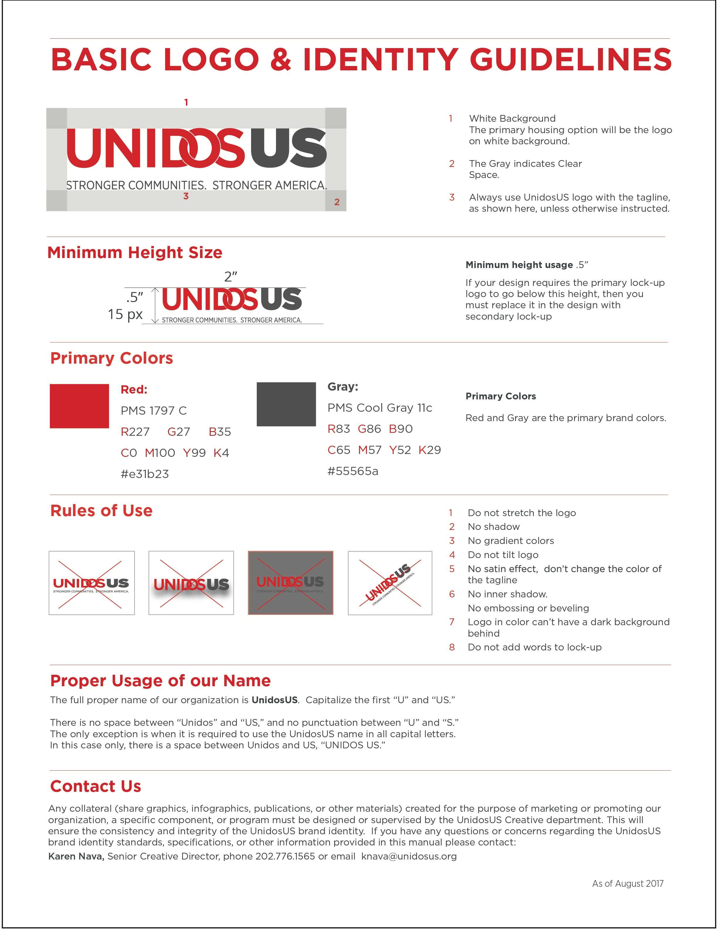 The new Brand Name process started with firm Sosa&Sosa, afterwards it was brought in-house to finalize it. There was something missing, the logo wasn’t showing the brand. I made a creative choice, the meaning of the name itself gave me the hint: Unidos means United. Therefore, I interlocked the D and O with the purpose of signifying embrace, unity and community and made it bolder. It was a winner!